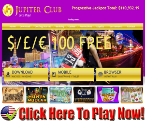 Jupiter Club Casino : Free $100.00 Sign On Bonus : 100 Percent Deposit Match Bonus : 150+ Casino Games : Software Engineered By Saucify : American Players Allowed...